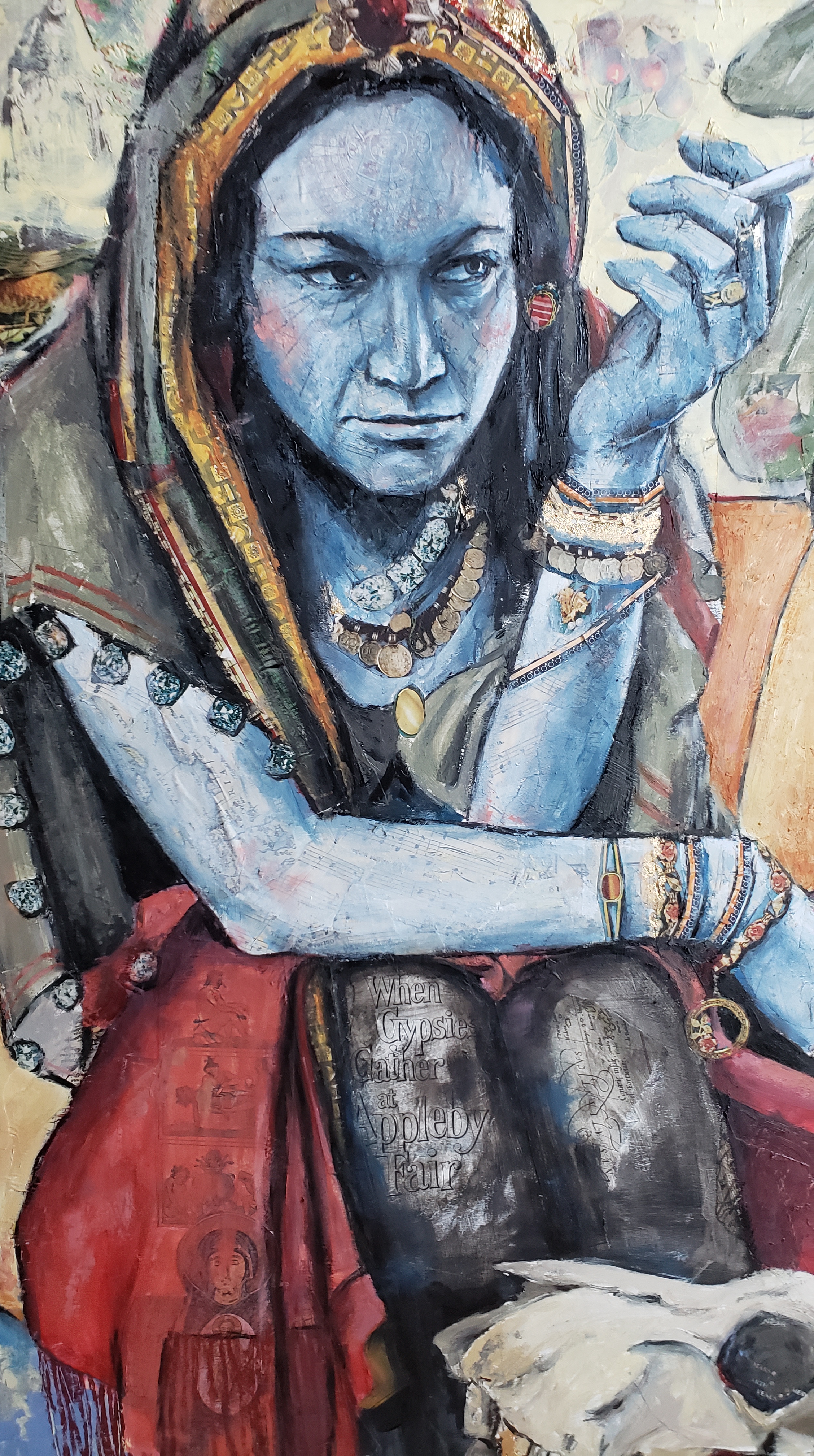 This artwork is part of my extensive collection of mixed media collages that I’ve crafted over the years. The creative process involved sketching the figure onto a prepared surface and refining the composition. The collage materials included antique postcards, maps, sheet music, vintage National Geographic magazines, and various ephemera. Carefully cutting, ripping, and pasting these pieces onto the surface, I arranged them to enhance specific areas of the composition and add texture to others. Once content with the collage arrangement, I employed oil paint to bring forth the apparition of a figure.