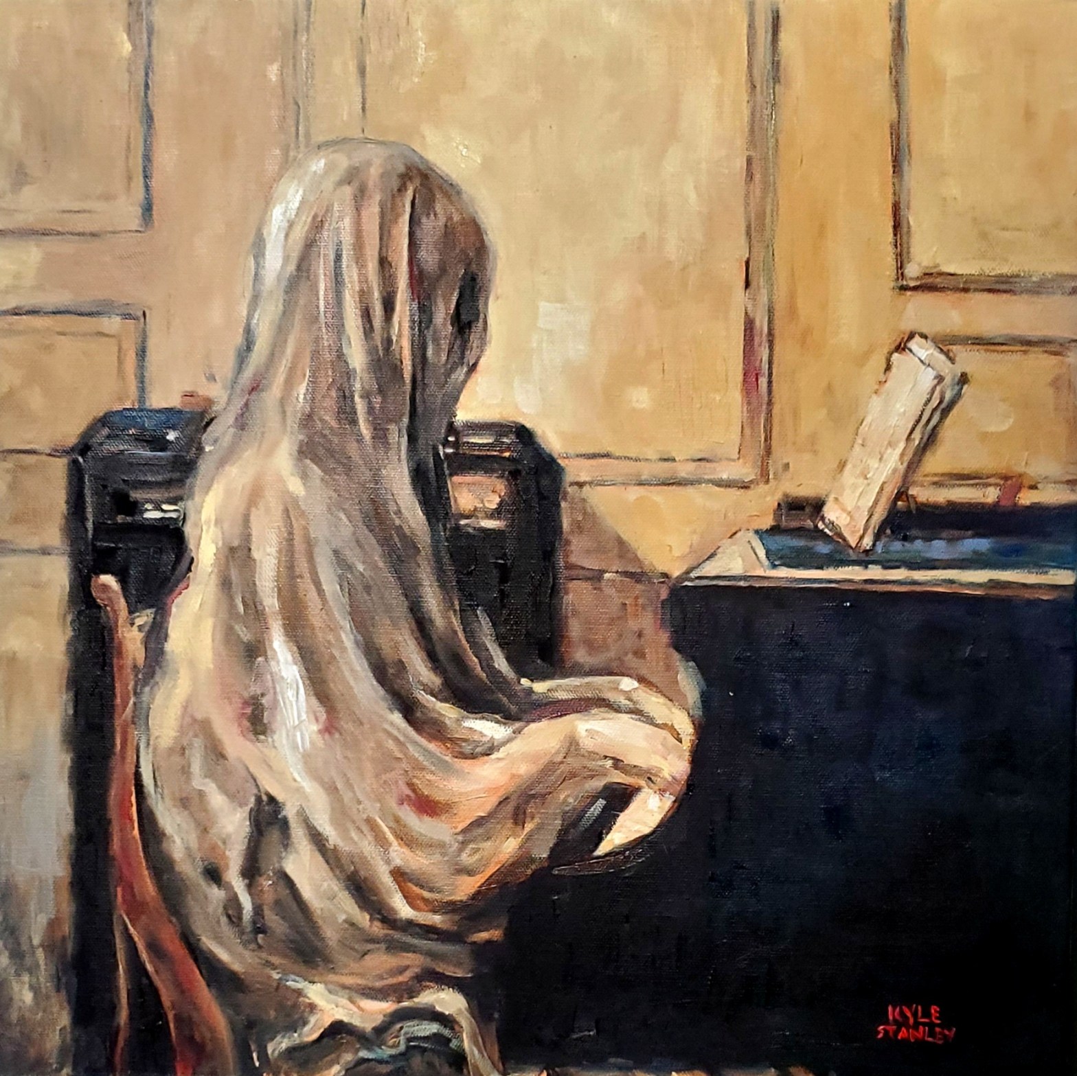 I created this piece a few months ago. I was commissioned by a couple that had previously purchased 2 of my other ghost oil paintings. It now resides in the home of a Jazz performer in the Kansas City area.