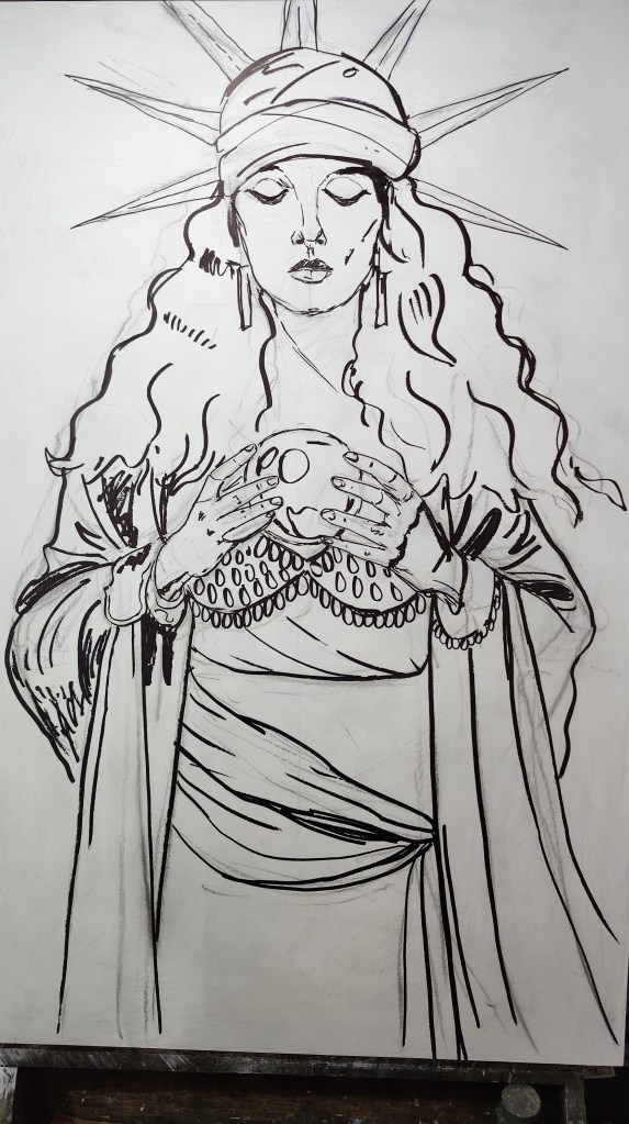 Mixed Media – Oil painting, gold leaf and collage