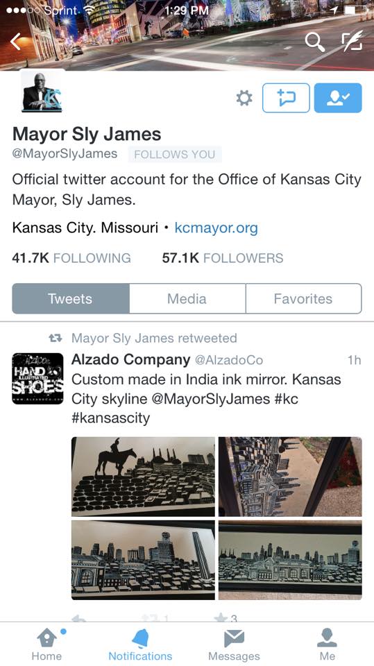In 2017 Kansas City’s Mayor Sly James shared my work on his twitter page.